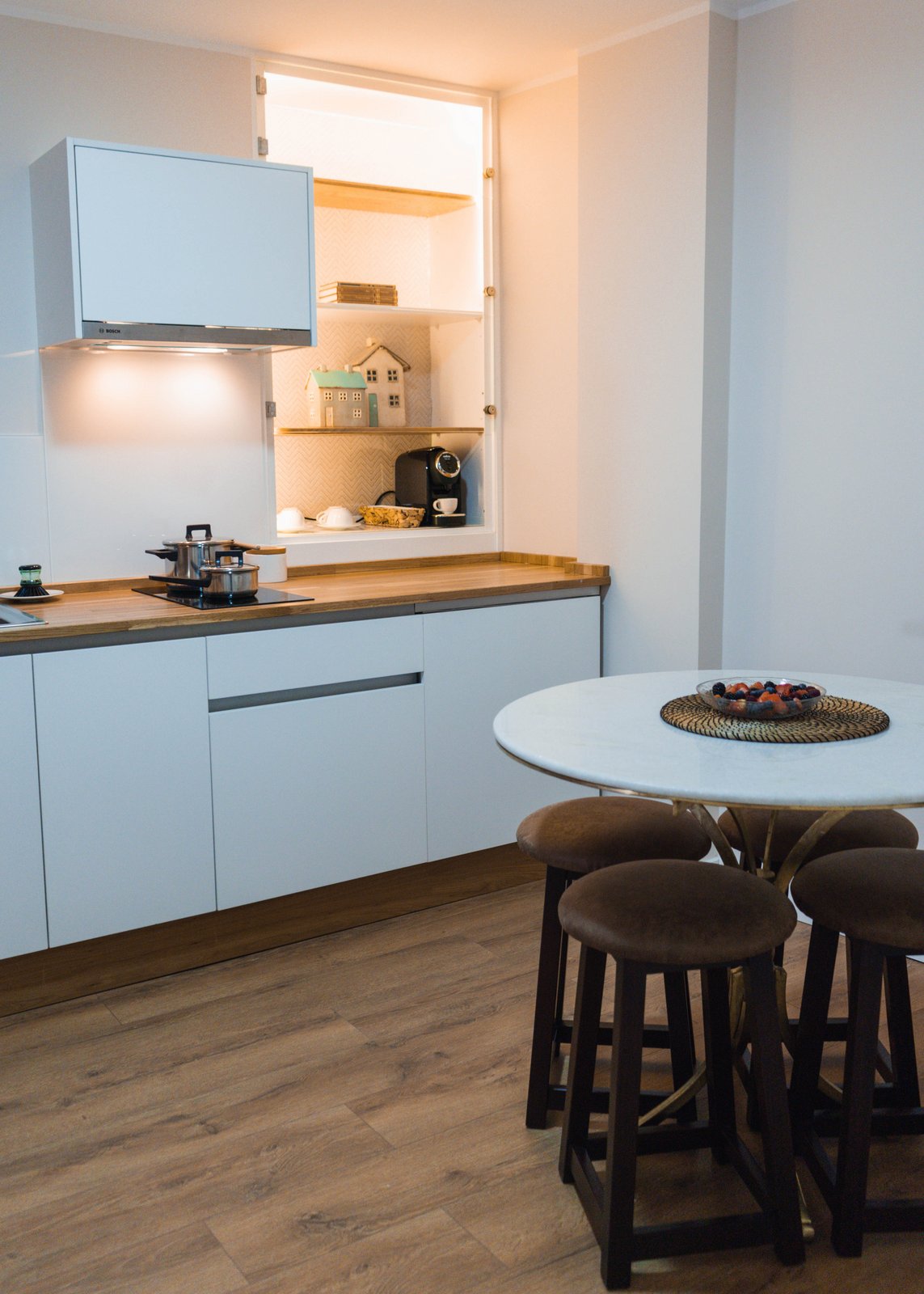 De design contemporâneo em tons neutros, este apartamento com 35m2 detém de uma cama de casal extralarga ou duas individuais com vista para o jardim.