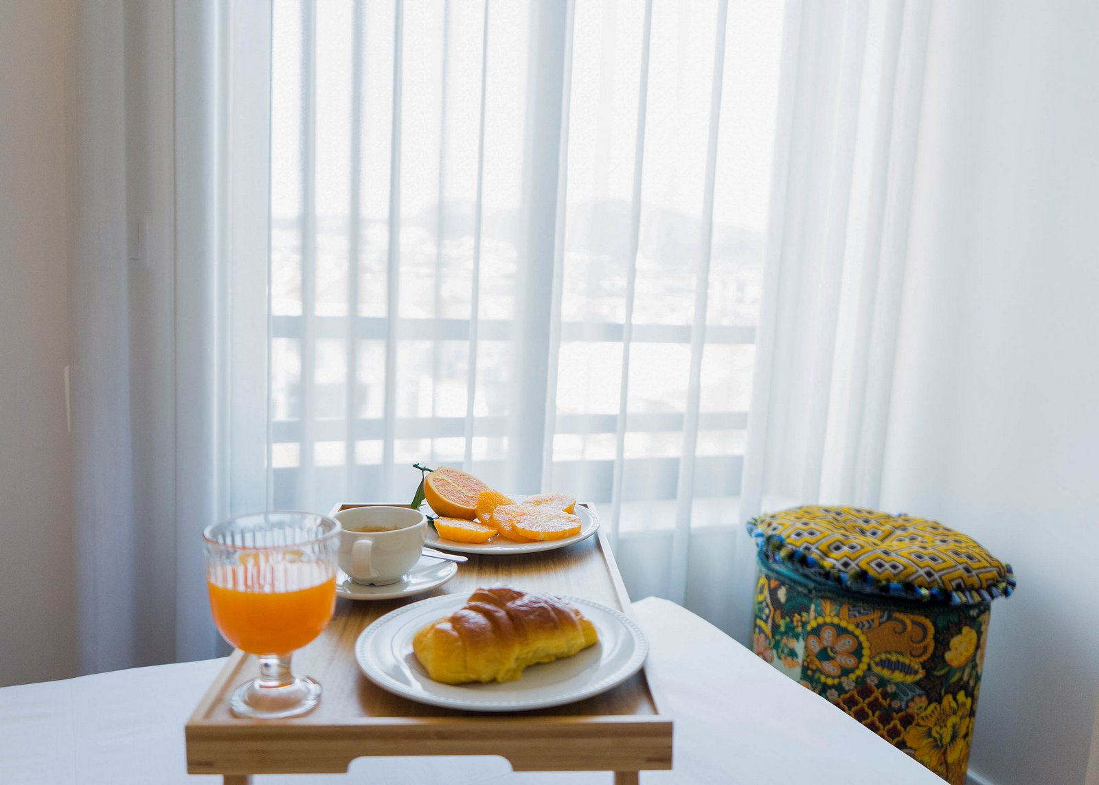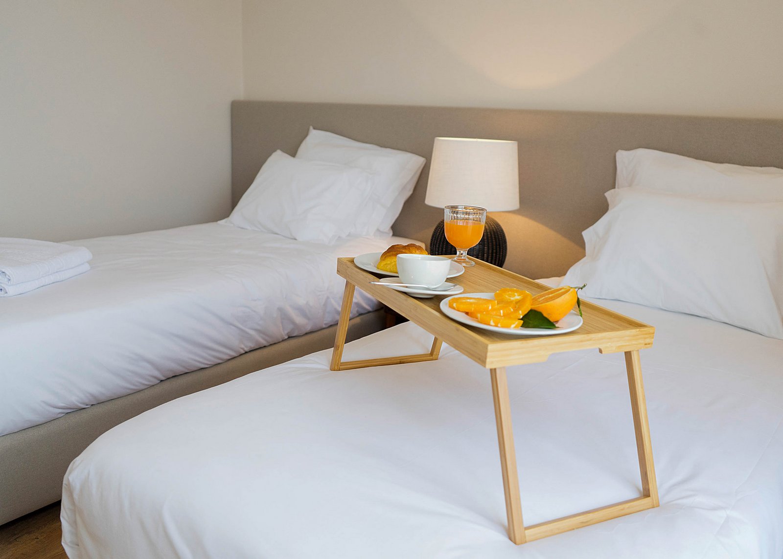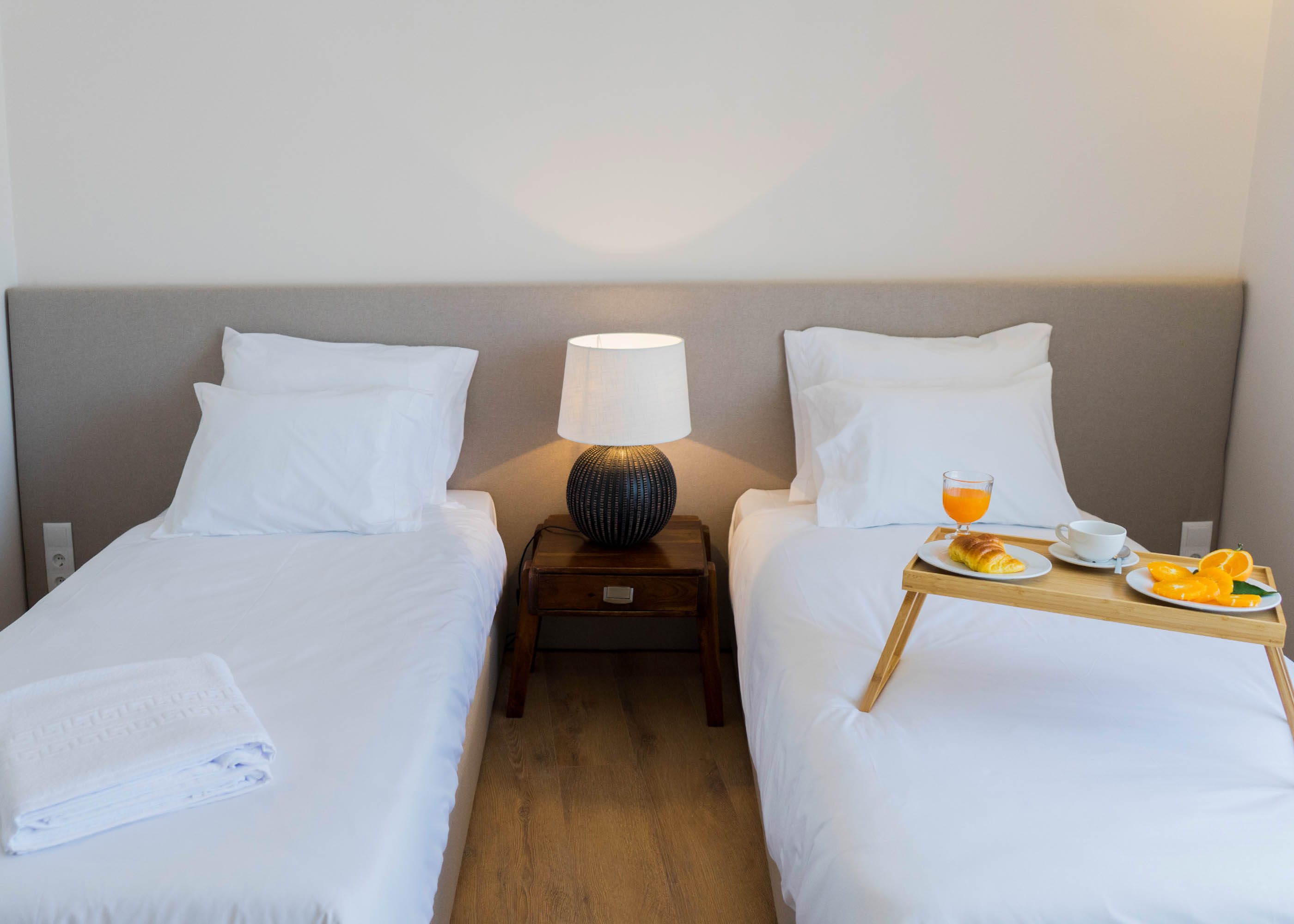 De design contemporâneo em tons neutros, este quarto com 20m2 detém de uma cama de casal ou duas individuais com vista para a cidade.