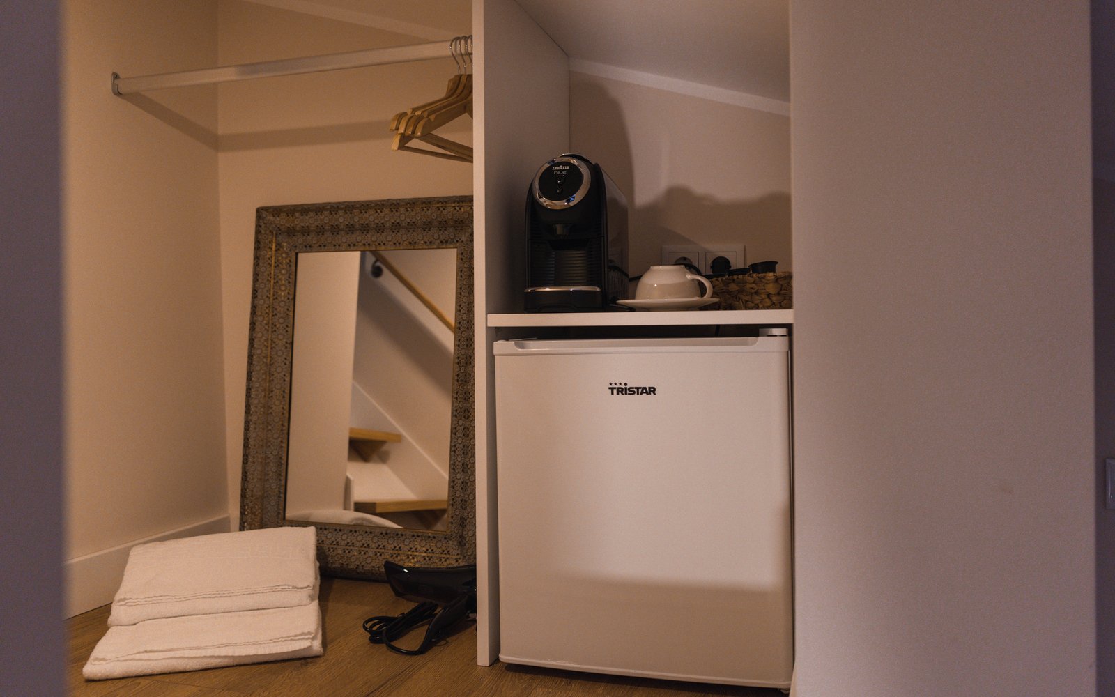 Para ocupação máxima de 4 pessoas este quarto possui casa de banho privativa, ligação gratuita ao WiFi, televisão plana com canais por cabo e satélite, ar condicionado, comodidade para fazer chá e café e um pequeno frigorifico.